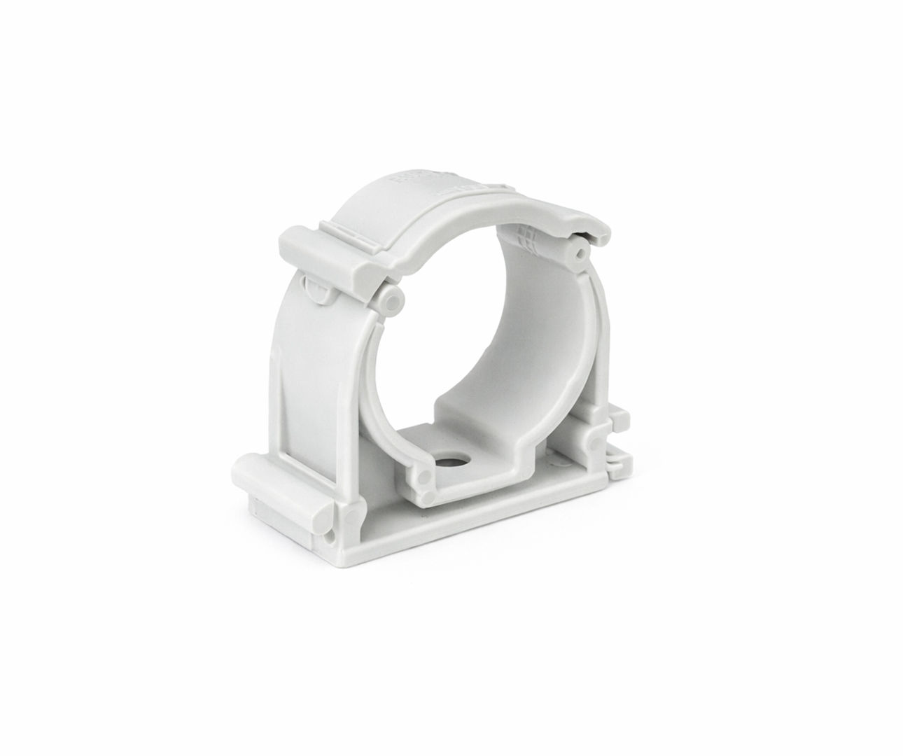 De kunststof buisklem wordt over het algemeen gevormd door spuitgieten van PP en andere kunststoffen; de basis heeft een montagegat in de bodem, dat wordt gebruikt om de bevestigingsschroeven te installeren om de kunststof buisklem aan de muur of de grond te bevestigen; of het wordt rechtstreeks op het bord of zachte objecten geïnstalleerd met behulp van de zelftappende schroeven. Verder bevat het een klem voor de positionering van de pijp.