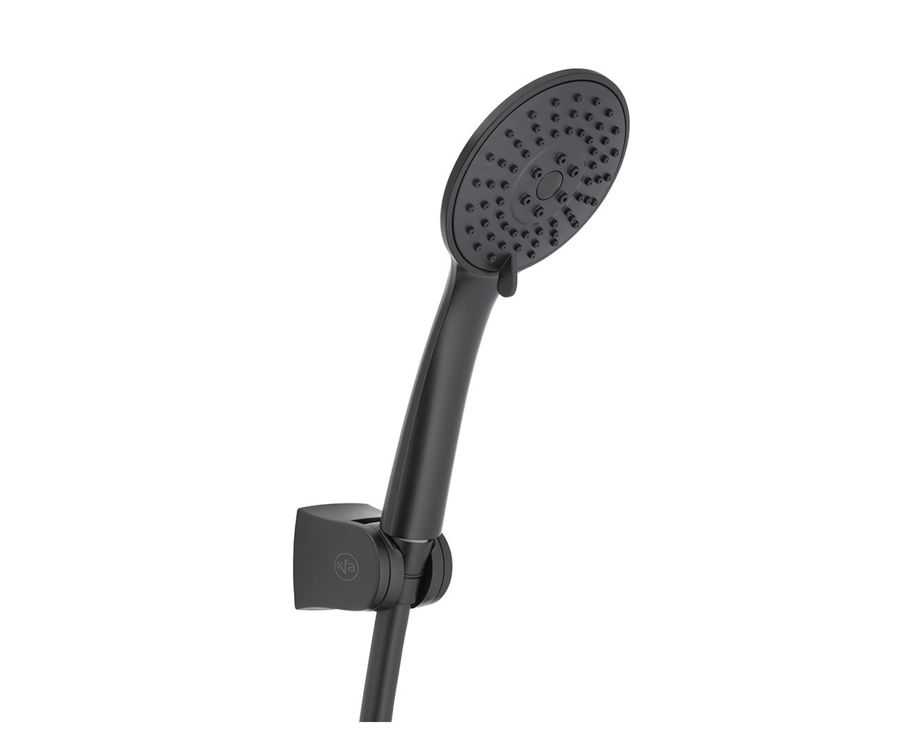 Deze handdouche heeft een draaibare douchekop met drie stralen in een vaste houder.