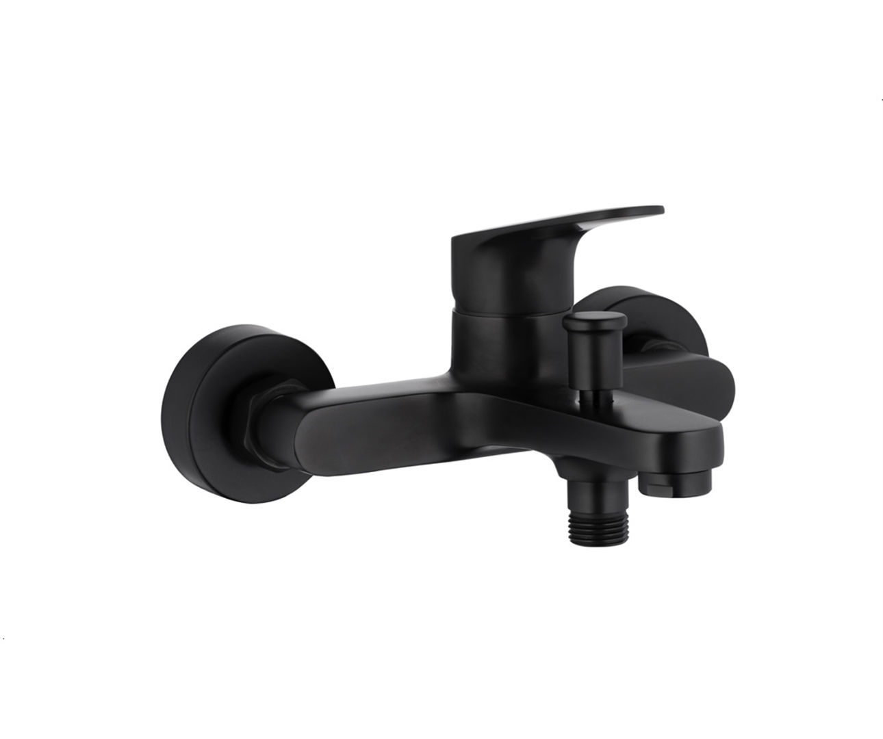 Technische specificatieType: Badmengkraan, Montage: Wandmontage, Bediening: Éénhendel, Materiaal: Messing, Afwerking: Mat zwart, Aansluiting: Standaard badkraanaansluiting, Toepassing: Badkamer / bad, Stijl: Modern / minimalistisch
