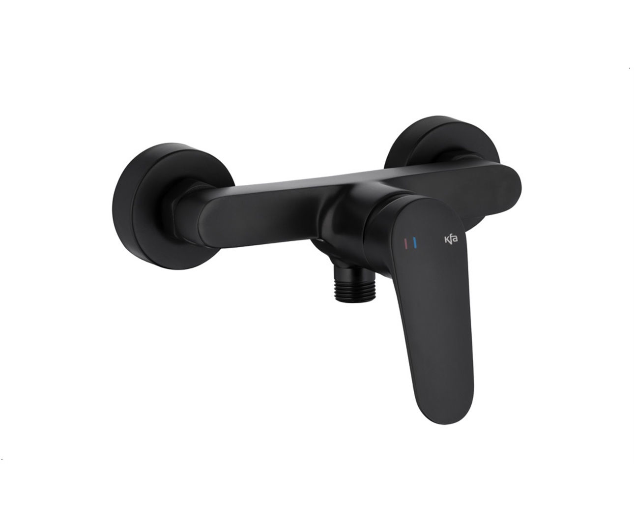 Technische specificatieType: Douchemengkraan, Montage: Wandmontage, Bediening: Éénhendel mengkraan, Materiaal: Messing, Afwerking: Mat zwart, Aansluiting: Standaard doucheaansluiting, Toepassing: Badkamer / douche, Stijl: Modern / minimalistisch