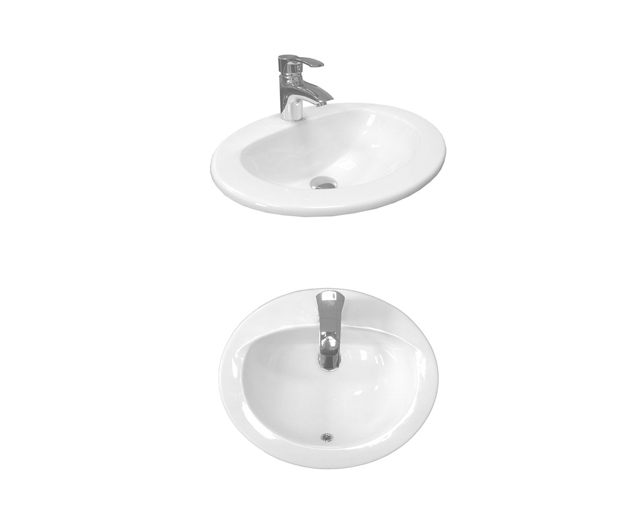 Deze ovale wasbak kan worden geplaatst op een badmeubel.