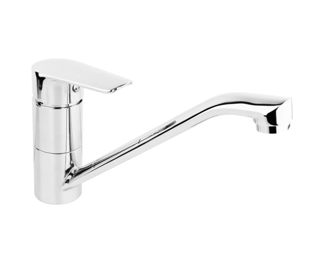 De lage staande wastafel mengkraan heeft één greep en wordt bevestigd op de wastafel.