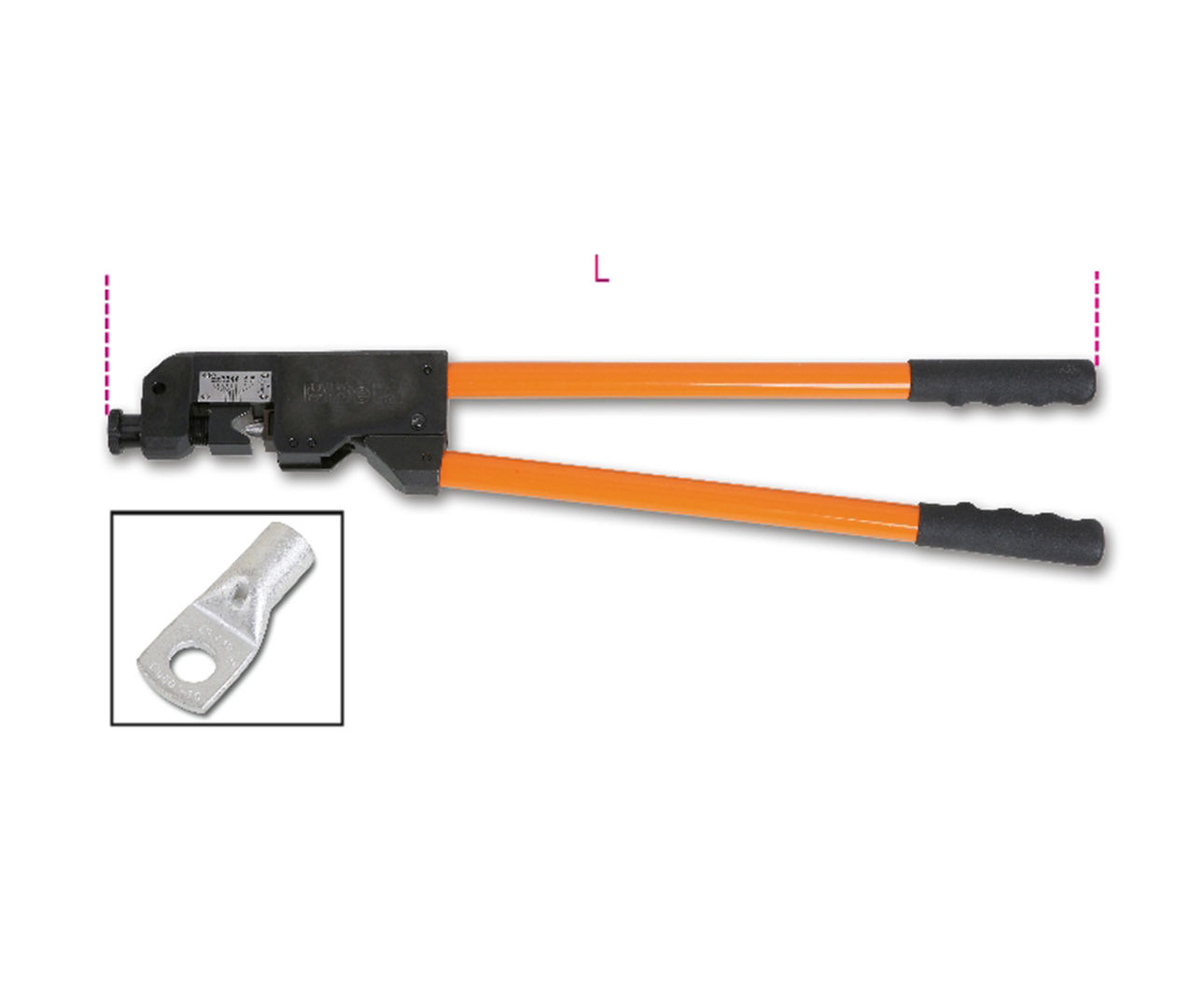 Met de kabelschoentang of krimptang worden elektriciteitsdraden op de gewenste maat geknipt voor de kabelschoen. Hiermee wordt een veilige verbinding gecreëerd. Deze tang is geschikt voor niet-geïsoleerde koperen terminals en knipt draad van 10 tot 120 mm.