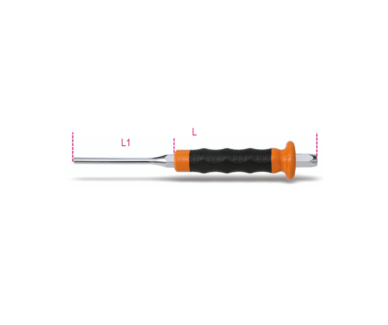 De pendrijver of doorslag wordt gebruikt om pennen uit gaten te slaan. De pendrijver heeft een vlakke kop, een conische pendrijver en een kunststof greep. Het handvat vangt schokken op en beschermt de hand. Deze pendrijver is 191 mm lang en heeft een kop met een doorsnede van 4 mm.
