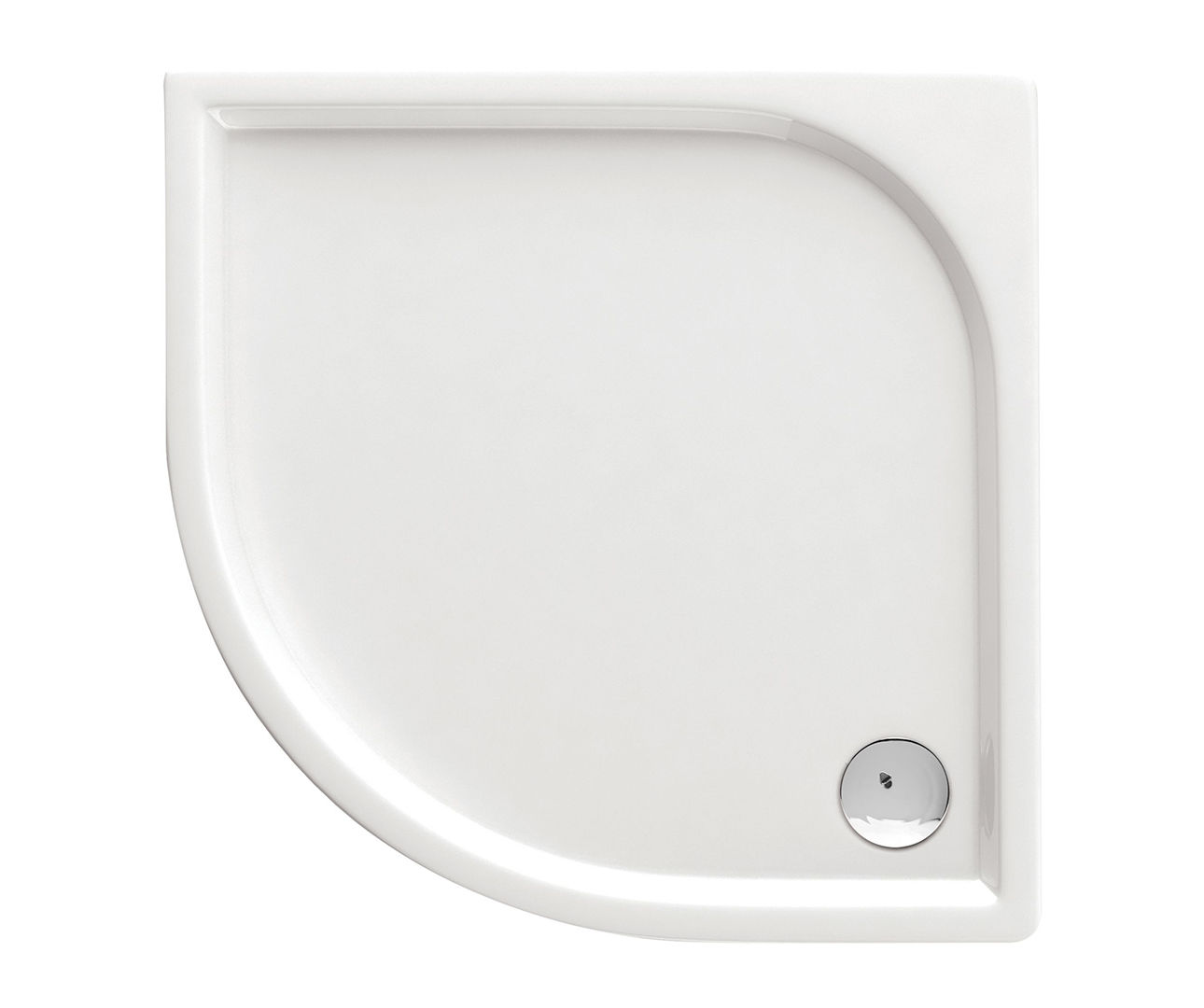 Deze kwartronde douchebak kan worden ingebouwd op vloerhoogte.