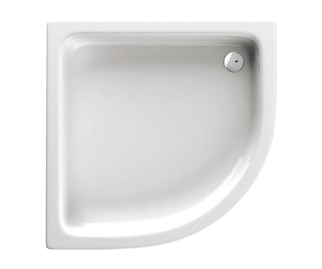 Deze kwartronde douchebak kan worden ingebouwd op vloerhoogte.
