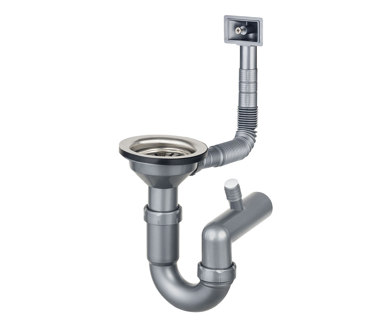 Sifon voor spoelbak met 1 bak. Met aansluiting voor vaatwasser.