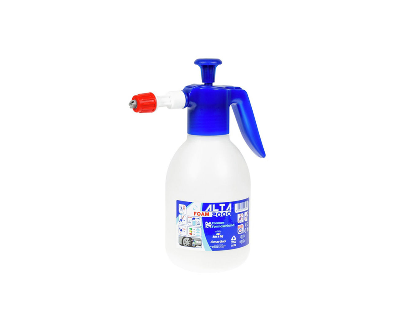 Praktische sneeuwschuimvormende drukpomp, geschikt voor zowel gebruik in de professionele sector als voor de huishoudelijke schoonmaak en in elke andere situatie waarbij het nodig is om vuil door het schuim op te lossen en/of te ontvetten. Het gebruik ervan wordt aanbevolen voor het reinigen van keukens, ramen, het reinigen van interieurs en carrosserieën van auto's en diverse voertuigen.