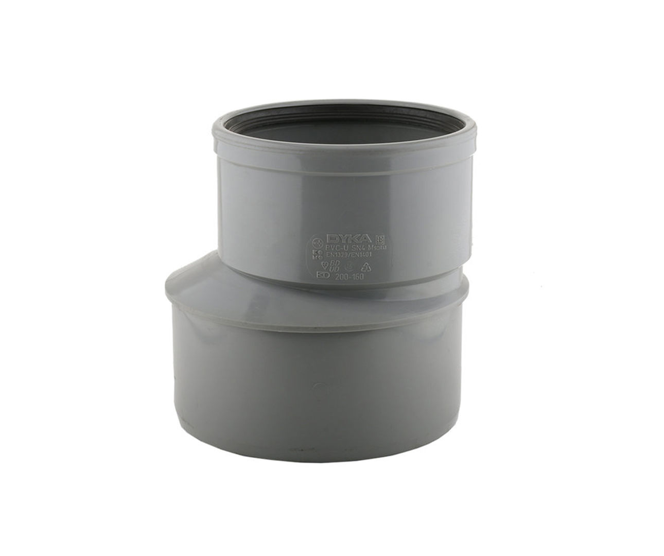 DYKA PVC excentrisch verloopstuk SN4 200x160mm spie/mof grijs
