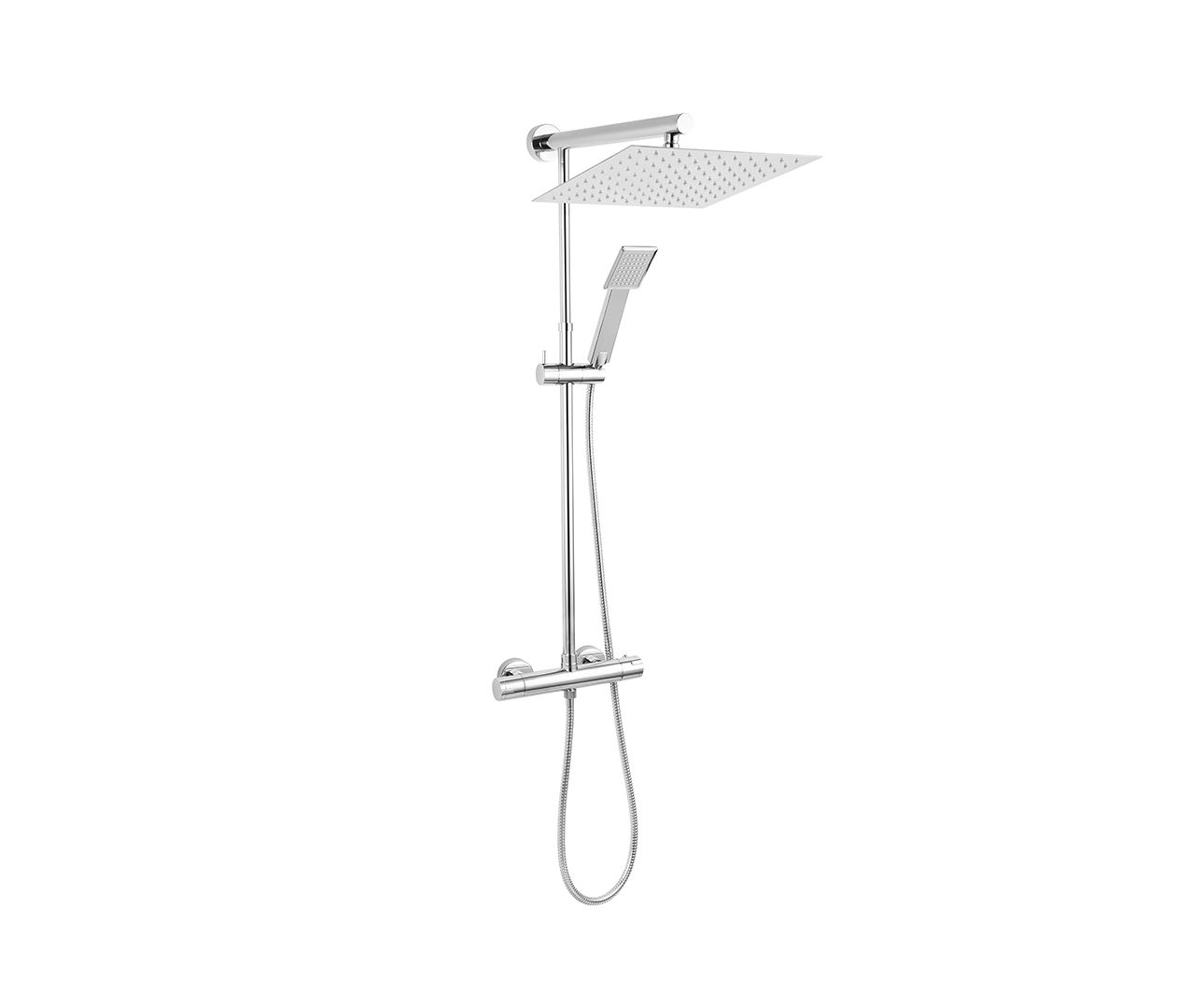 Deze douche bestaat uit een regendouche met een diameter van 300 mm, een afneembare handdouche en een thermostaatkraan.