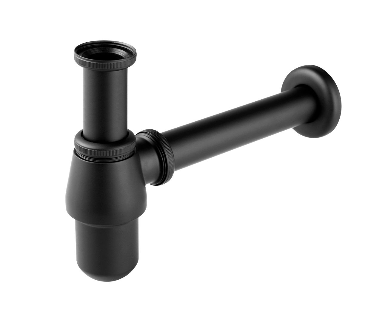 Universele flessensifon G5/4” in zwart messing, geschikt voor wastafels.