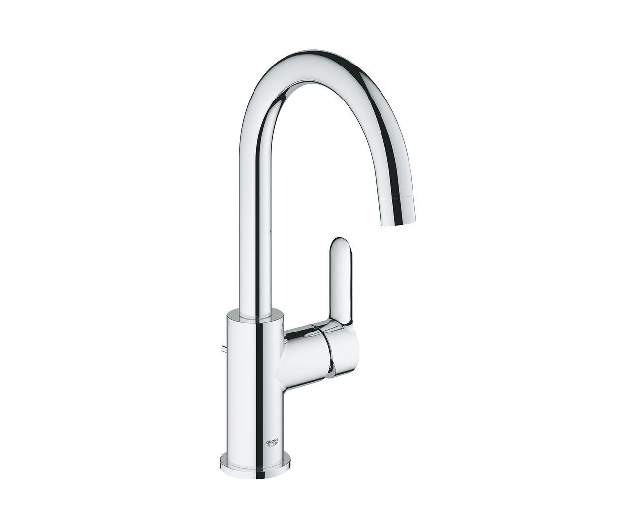 Maak kennis met de GROHE BauEdge wastafelmengkraan met het extra comfort en gemak van een hoge draaibare uitloop. Binnenin biedt de GROHE LongLife keramische cartridge een duurzame, betrouwbare volume- en temperatuurregeling. GROHE EcoJoy verlaagt je waterverbruik tot 5,7 l/min, terwijl er nog steeds voldoende water wordt uitgestraald. De pop-up waste wordt bediend door een discreet stangetje aan de achterkant van de kraan, zo hoef je nooit je handen in het gebruikte water te steken. Dankzij het Easy Installation System is de installatie eenvoudig. Het slanke profiel maakt het gemakkelijk schoon te houden en de duurzame GROHE StarLight chromen afwerking is gemakkelijk schoon te maken en zal er jarenlang sprankelend uitzien. GROHE Bau kranen zijn ontworpen om naadloos aan te sluiten op GROHE Bau Ceramics voor volledige esthetische harmonie en ultieme prestaties, wat het ontwerpproces eenvoudig maakt.