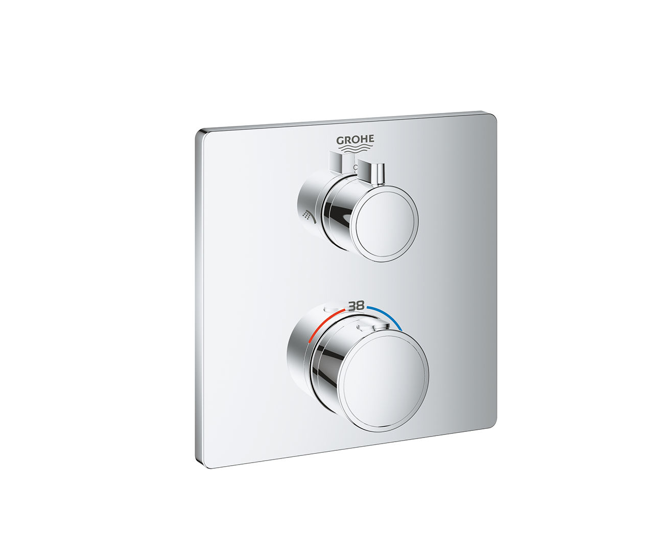 De Grohtherm thermostatische douchemengkraan trim set is het perfecte sluitstuk voor je douche, ontworpen om je moeiteloos te laten wisselen tussen je hoofddouche en handdouche. Regel de waterstroom eenvoudig met de eenvoudige actie van GROHE AquaDimmer waarmee je het water moeiteloos kunt richten waar je wilt en tegelijkertijd het volume regelt. Het strakke, vierkante ontwerp nodigt uit tot interactie met de intuïtieve bedieningselementen en het slanke profiel (muurplaat van 10 mm, totale projectie van 43 mm) is ideaal voor minimalistische schema's. Deze thermostaat zit boordevol geavanceerde technologie en is gemaakt in Duitsland en is een genot om te bedienen. GROHE TurboStat-technologie voorkomt onaangename temperatuurschommelingen. Het is ook gezinsvriendelijk omdat de GROHE SafeStop-overbruggingsknop is ingesteld op 38°C, zodat verbranding tot het verleden behoort. En met de GROHE SafeStop Plus optionele temperatuurbegrenzer kun je een extra limiet van 43°C toevoegen voor extra veiligheid. De slijtvaste, glanzende GROHE StarLight chromen afwerking zal er jarenlang perfect uitzien. En de GROHE QuickFix metalen rozet met een vergrendelingssysteem en afgedekte afdichting maakt de installatie snel en eenvoudig.