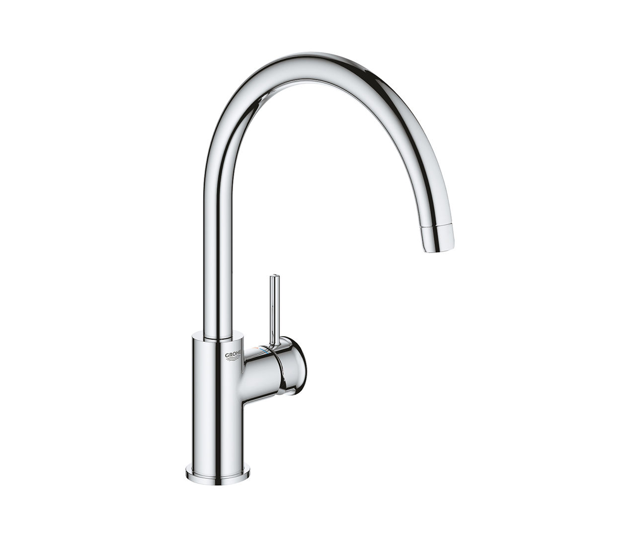 De vloeiende lijnen en de voelbare metalen handgreep maken de GROHE Start Classic eengreeps keukenkraan tot een chique nieuwkomer in elke moderne keuken. De hoge uitloop laat voldoende ruimte over voor het afwassen van grote potten en pannen, en er is een soepele 360? draaibeweging voor maximale bruikbaarheid en bereik. Regel de stroom met de stevige metalen handgreep, in de wetenschap dat de GROHE LongLife keramische cartouche garant staat voor nauwkeurige volume- en temperatuurniveaus. De GROHE Zero gescheiden interne waterwegen zorgen ervoor dat je drinkwater veilig lood- en nikkelvrij is, terwijl het Easy Installation System met flexibele aansluitslangen de montage van deze kraan snel en probleemloos maakt. De glanzende maar slijtvaste GROHE StarLight chromen afwerking zorgt ervoor dat deze keukenkraan zijn oogverblindende mooie uiterlijk behoudt door jarenlang gebruik.
