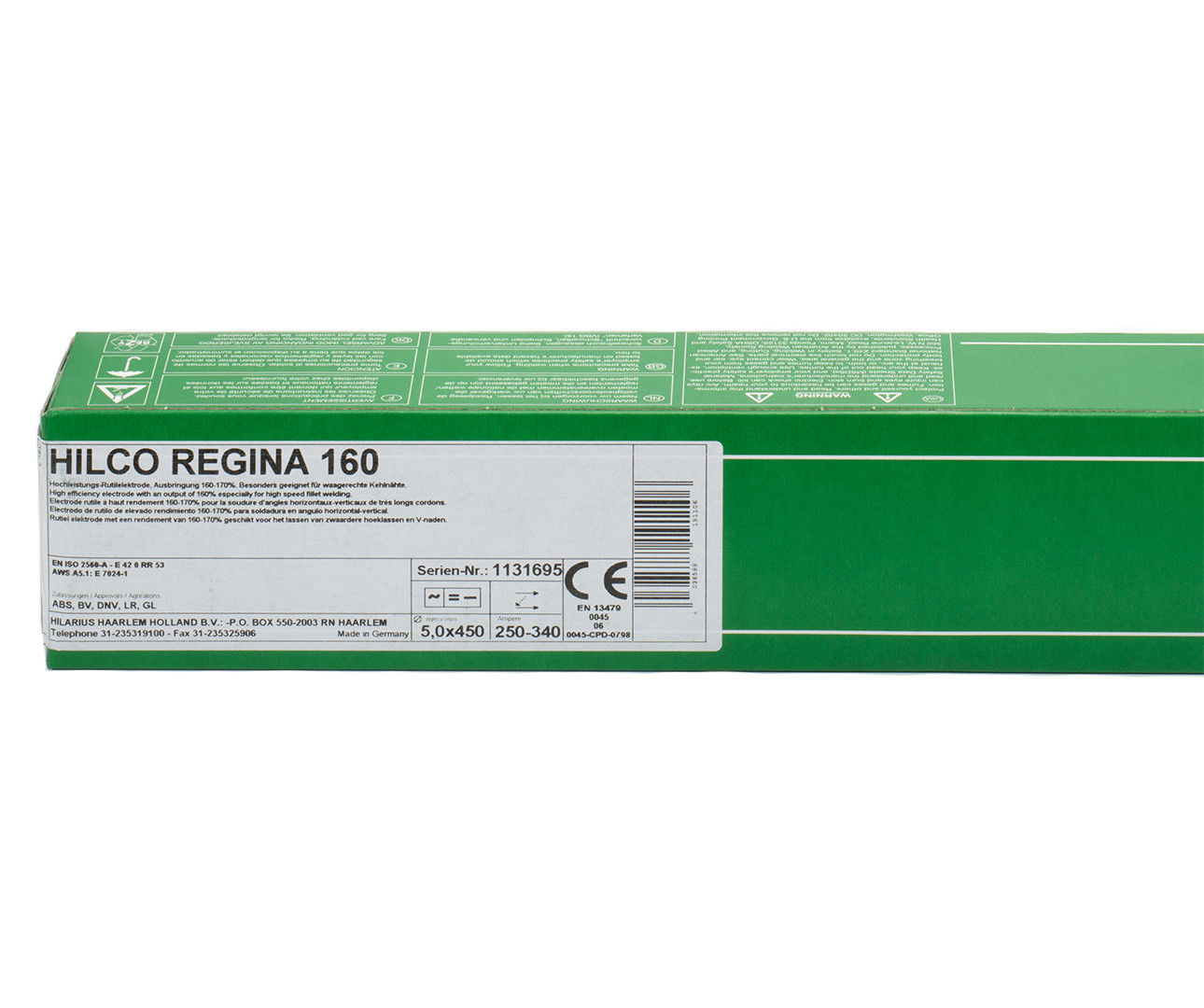De Regina 160 laselektrode is geschikt om horizontale lassen te leggen op ongelegeerd staal. Ook toe te passen bij geschilderd en vervuild plaatmateriaal. Het wordt gebruikt voor staalconstructies, onderhoudswerk en in de scheepsbouw.