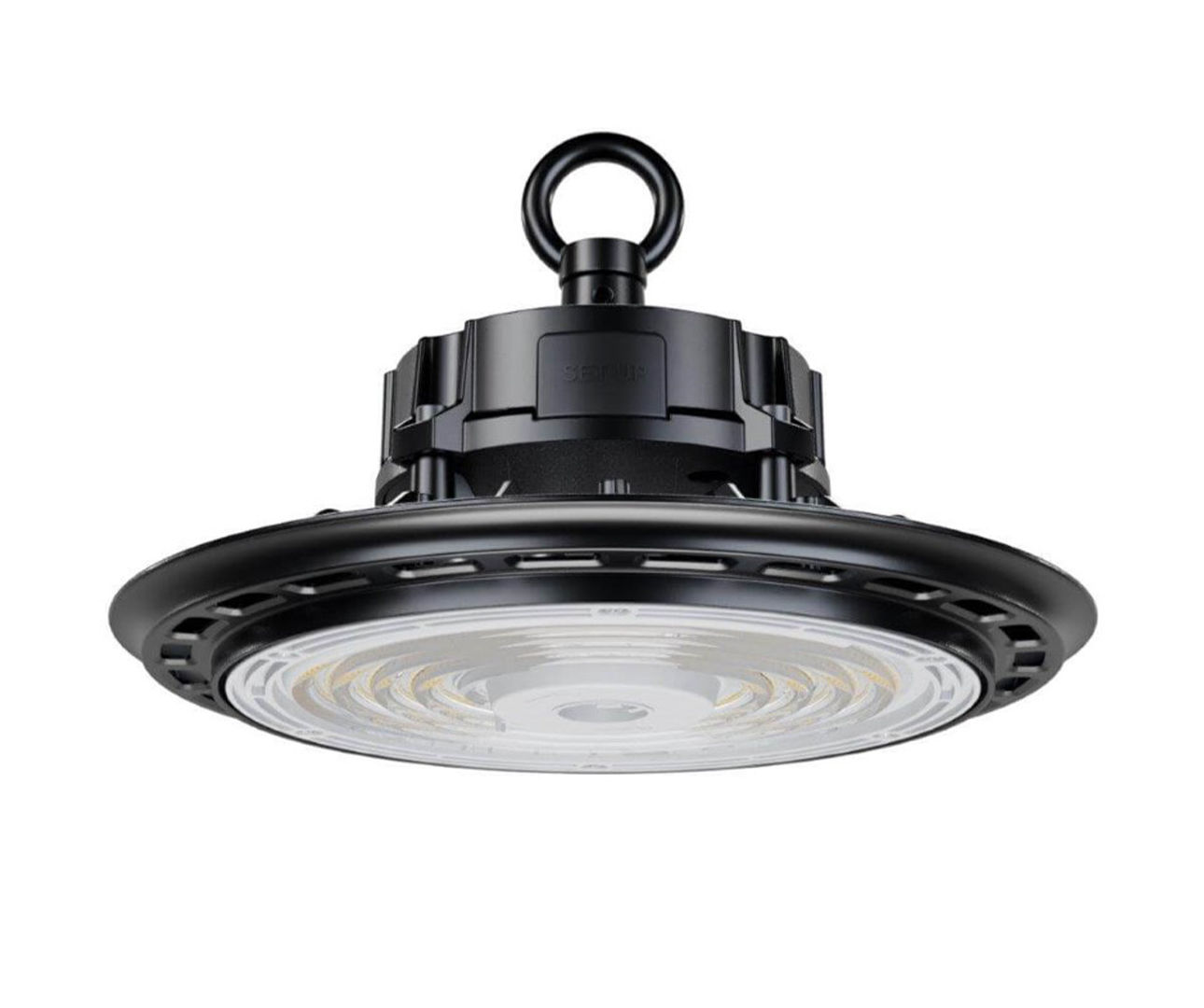 Highbay LED armatuur voor magazijnen, fabriekshallen en sportfaciliteiten. Levert krachtige verlichting vanaf grote hoogte.