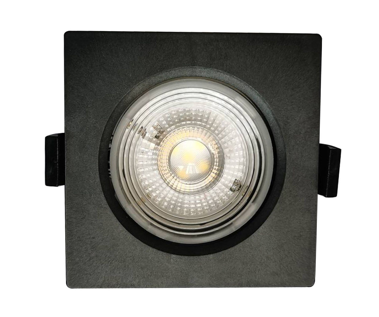 Technische specificatieVorm vierkant, kleur zwart, fitting geïntegreerd LED, vermogen 5W, lichtkleur 3000K (warm wit), technologie LED, montage inbouw, spanning 100–240V, frequentie 50–60Hz, gebruik binnen