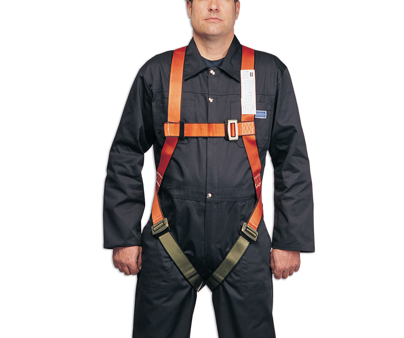 Werken op hoogte is gevaarlijk. Met een gezekerd veiligheidsgordel wordt ernstig lichamelijk letsel voorkomen. De FP700/1DL heeft een D-ring op de rug en snelsluitende borst- en beenbanden. Het nylon harnas is licht in gewicht en verdeeld bij een val de krachten gelijkmatig.