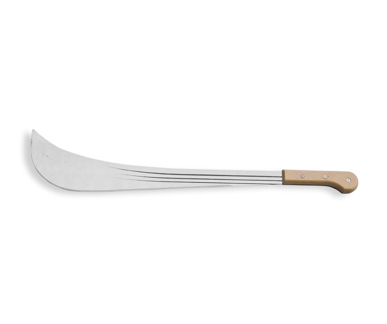 Deze houwer heeft de kenmerkende grote gekrulde punt aan het lemmet. De houwer heeft een houten handvat en is 457 mm lang.
