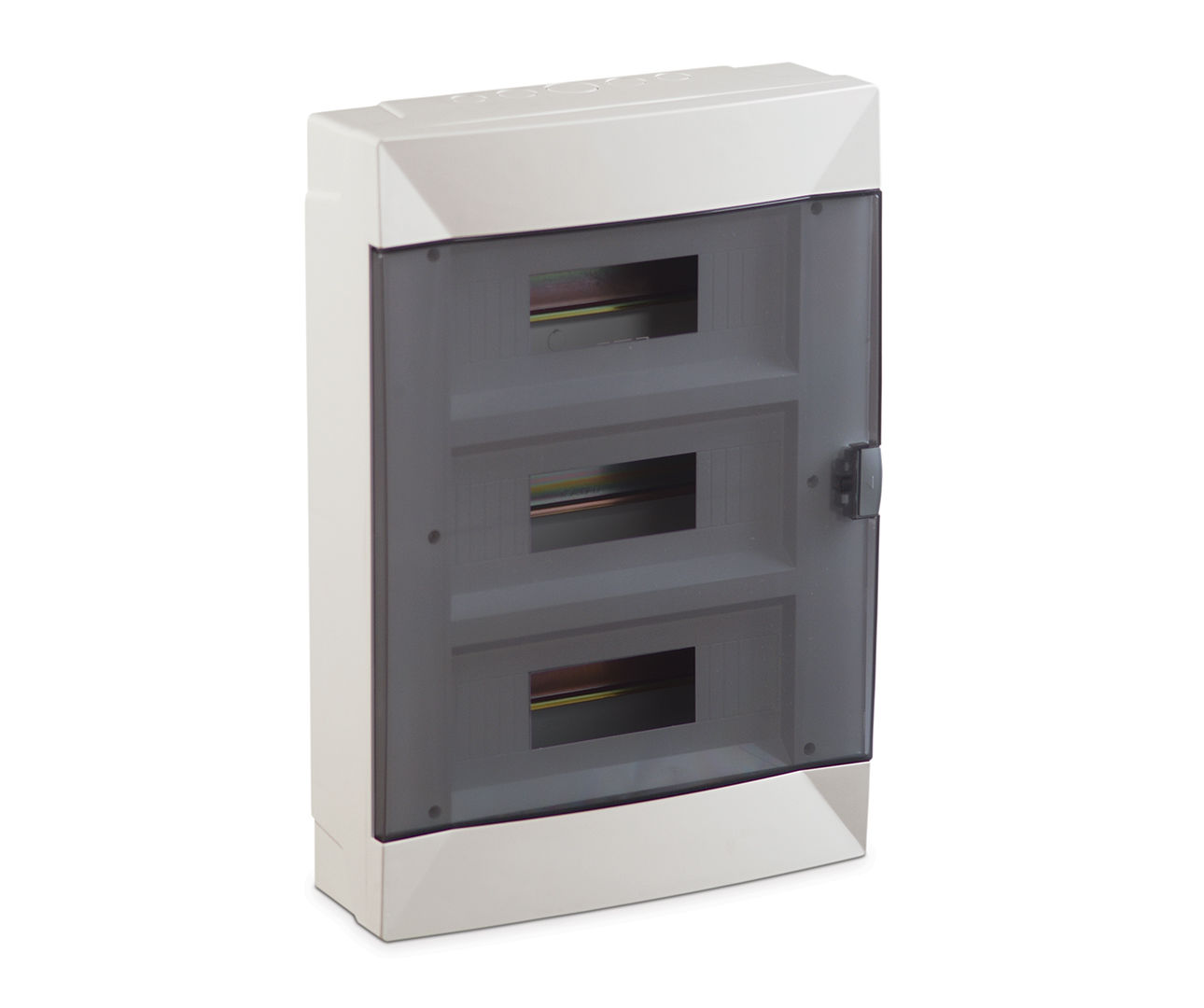 Deze MAKEL drielaags opbouw breakerkast met getinte deur biedt plaats aan 36 modules.