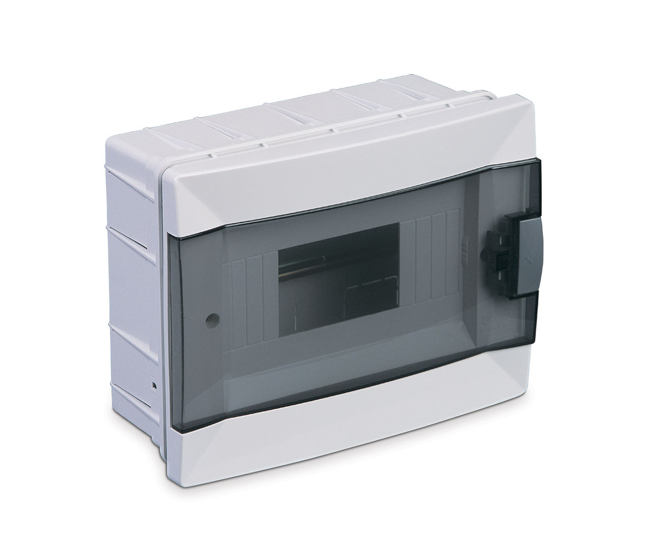 Deze MAKEL inbouw breakerkast met getinte deur biedt plaats aan 8 modules.