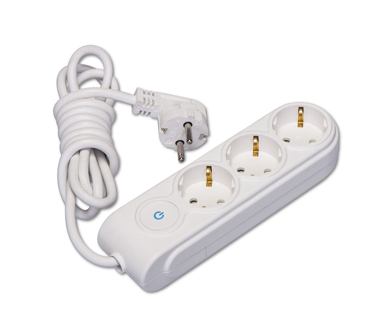 Verlengsnoer met drie stopcontacten en schakelaar.