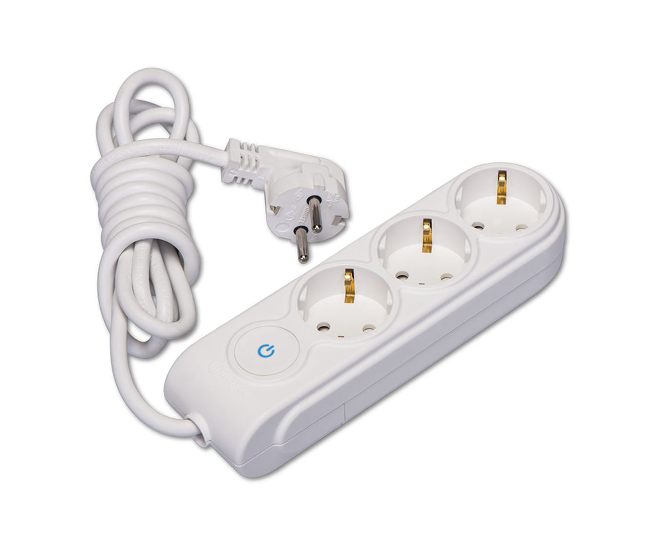 Verlengsnoer met drie stopcontacten en schakelaar.