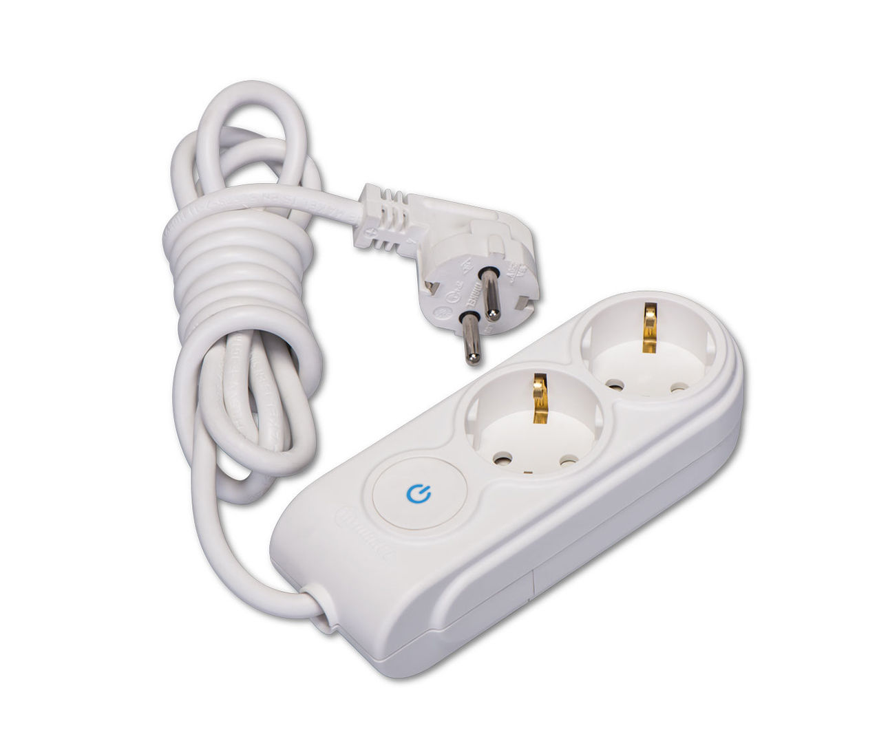 Verlengsnoer met twee stopcontacten en schakelaar, geaard.