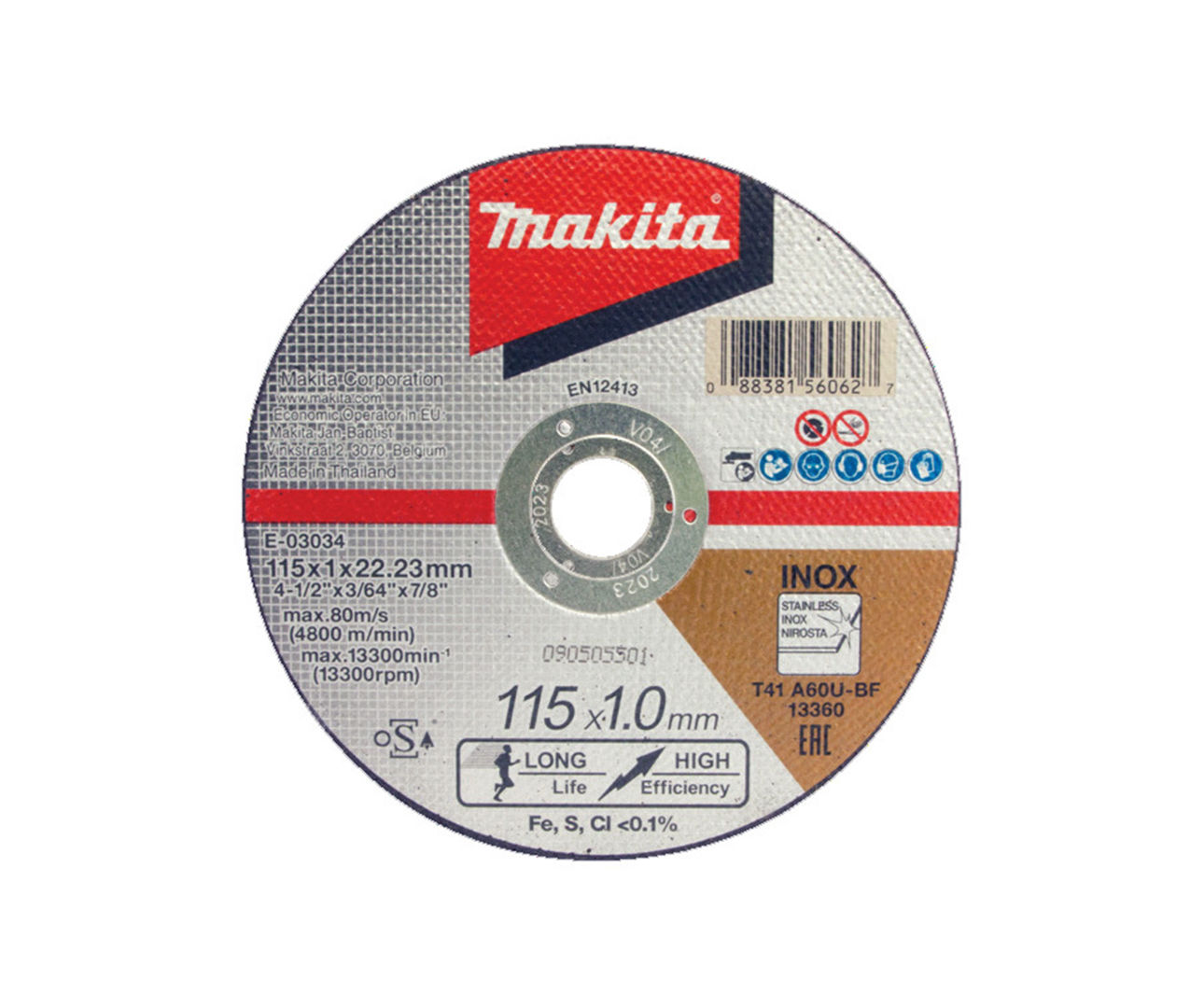 Makita-doorslijpschijf voor alle roestvaste en zuurbestendige staalsoorten zoals V2A roestvast staal, coracide, nirosta, zeer hittebestendig gietstaal (GX-staal), verenstaal en alle bouw- en constructiestaal.