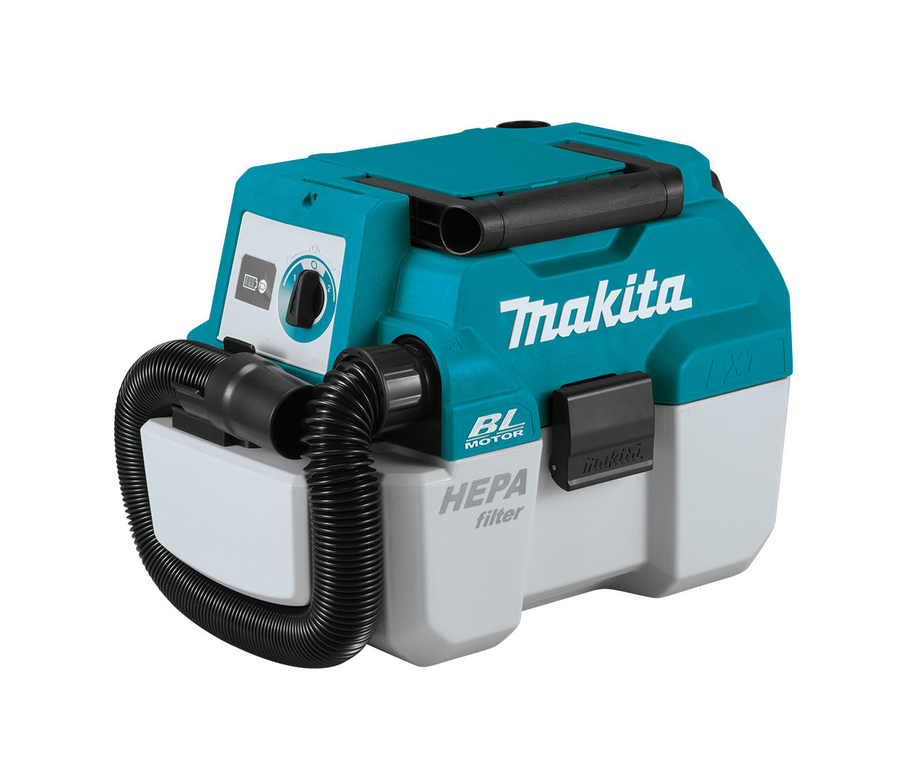 Makita DVC750LZ borstelloze LXT-stofzuiger uitgerust met HEPA-filter. L-klasse beoordeeld, verwijdert 99,0% van het stof met grenswaarde voor beroepsmatige blootstelling > 1,0 mg/m³. Geschikt voor zowel nat als droog gebruik (verwijder filter voor nat gebruik). De krachtige motor zorgt voor een variabele zuigkrachtregeling (hoog/laag) en produceert extreem weinig geluid. Compact formaat, gemakkelijk te vervoeren en te gebruiken. Uitgerust met een flexibele slang, met handige opbergruimte op het gereedschap, zodat alles binnen handbereik is.