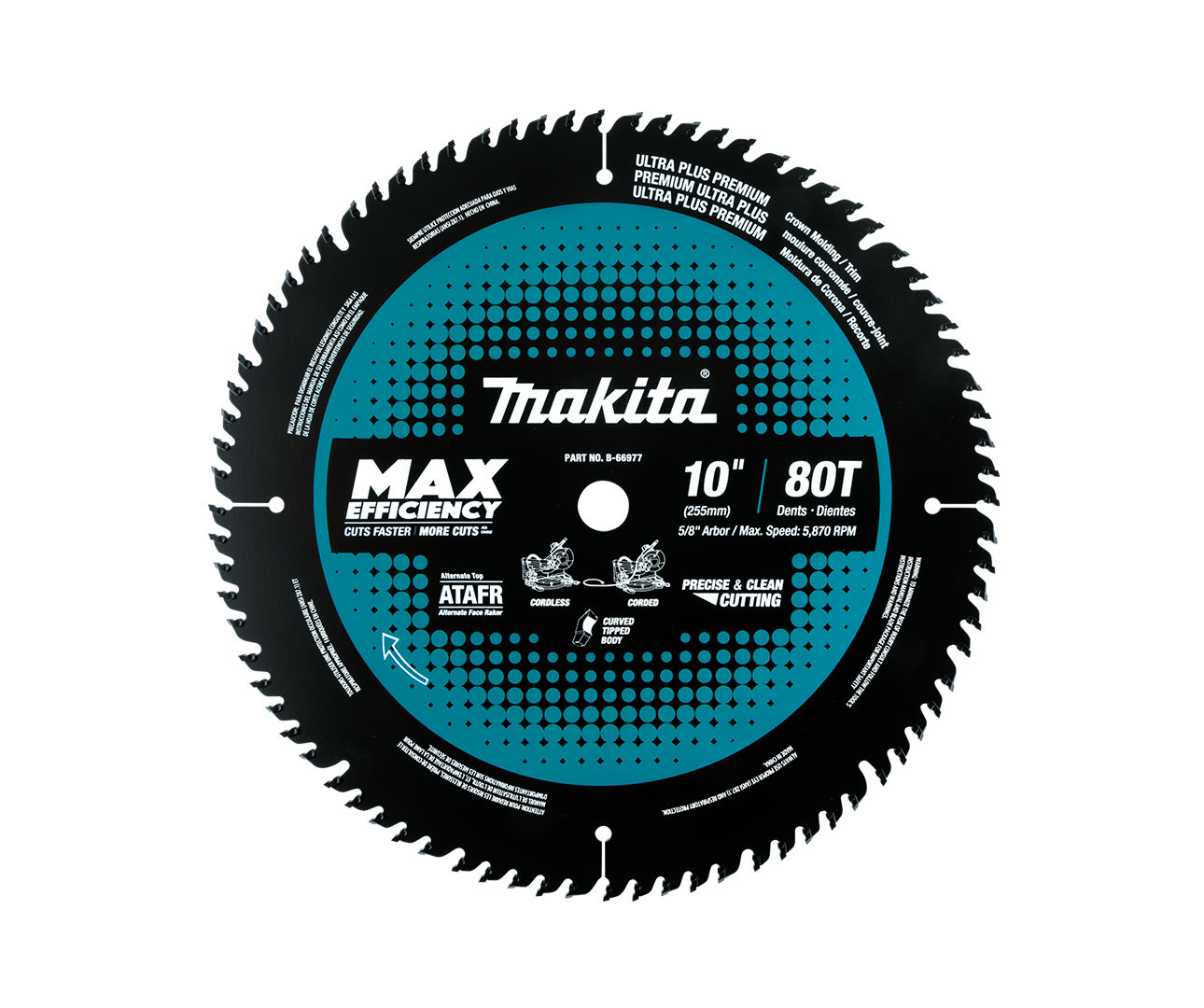Makita 10" 80T hardmetalen verstekzaagblad met maximale efficiëntie is ontworpen om nauwkeurig te zagen in een verscheidenheid aan houtmaterialen. Het blad is vakkundig gespannen voor precisie en echt zagen. Speciaal ontworpen hardmetalen punten helpen om de belasting van het gereedschap te verminderen terwijl snijden en zorgen voor soepelere sneden met minder kracht op de motor Vervaardigd uit hoogwaardig staal voor extra duurzaamheid gedurende de hele levensduur van het mes. Max Efficiency-accessoires zijn ontworpen om optimale looptijden en prestaties te leveren. Met Max Efficiency krijgen gebruikers meer gaten en meer sneden per lading dan met standaardaccessoires.