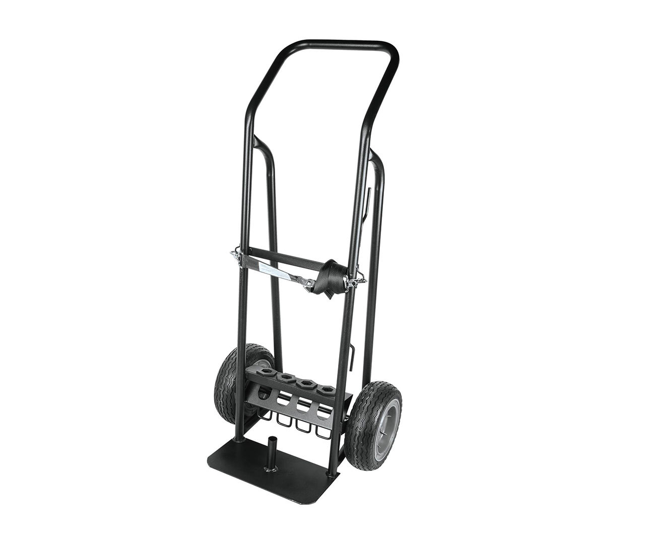 De Makita Premium Hamerwagen biedt aannemers gemakkelijk en veilig transport voor een breekhamer en bits. De grote, robuuste semi-pneumatische wielen rollen soepel over ruw terrein. De rails zijn ook ontworpen om gemakkelijker trappen, stoepranden en andere verhoogde oppervlakken op te tillen. Voor veilig transport houdt de verstelbare riem de hamer stevig vast aan de kar, en de bithouders houden tot vier 1-1/8" sloopstalen bits stevig vast.