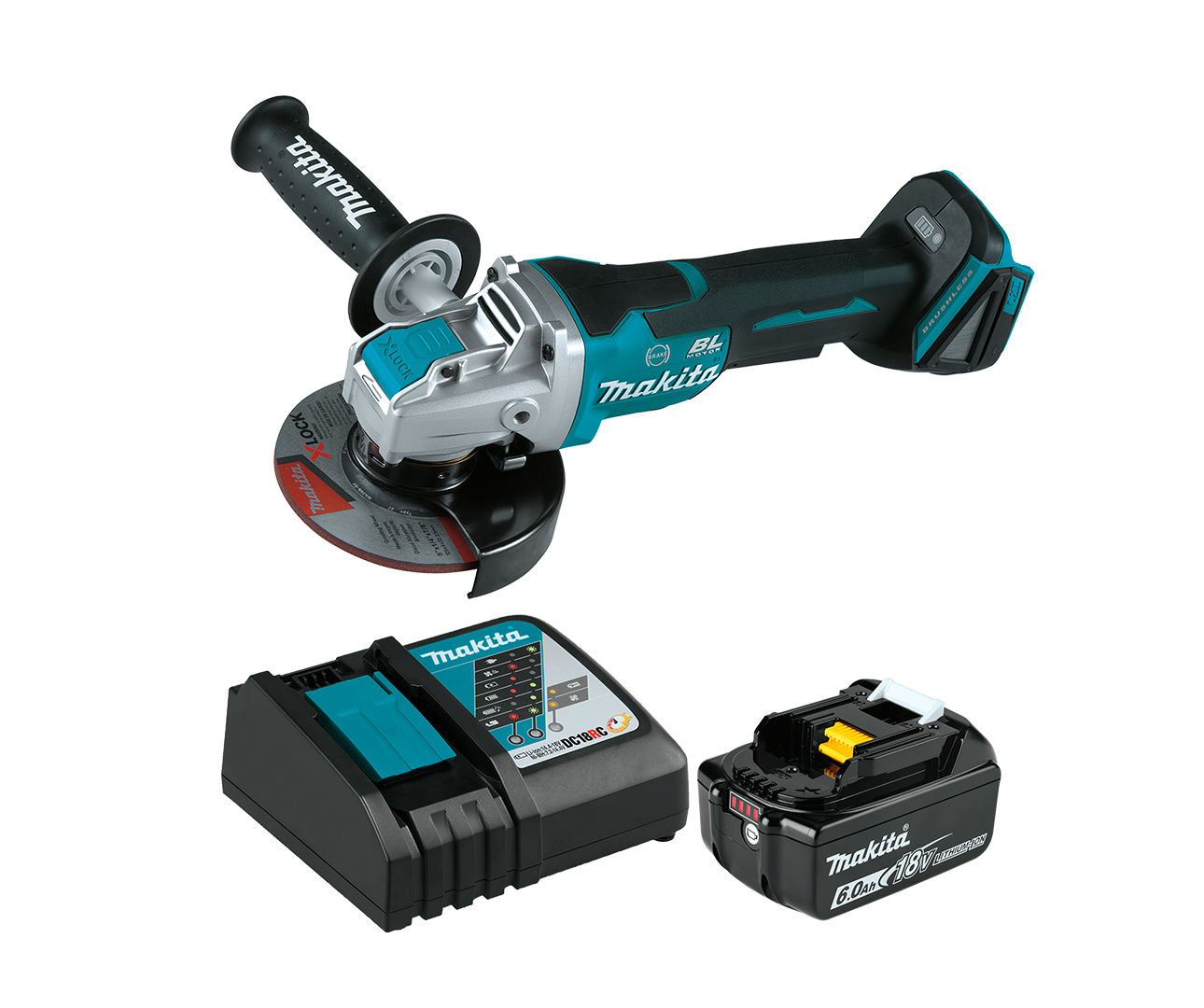 Accu-haakse slijper met borstelloze motor, aangedreven door 18V Li-ion LXT schuifaccu (apart verkrijgbaar). Voorzien van zachte start, anti-herstart, variabele snelheidsregeling, aan/uit-peddelschakelaar, elektrische rem, zijgreep die installatie aan beide zijden mogelijk maakt en verwijderbare stofkappen. Het X-Lock-mechanisme maakt eenvoudige, gereedschapsloze wielwissels mogelijk. Automatic Torque Drive Technology (ADT) past automatisch de snijsnelheid aan op basis van de belasting voor een optimale werking, en Active Feedback Sensing Technology (AFT) schakelt het gereedschap uit als de rotatiesnelheid plotseling afneemt. Het batterijbeschermingscircuit voorkomt schade aan de batterij door oververhitting, overontlading en overbelastingsstroom. Niet compatibel met batterijen uit de G-serie.