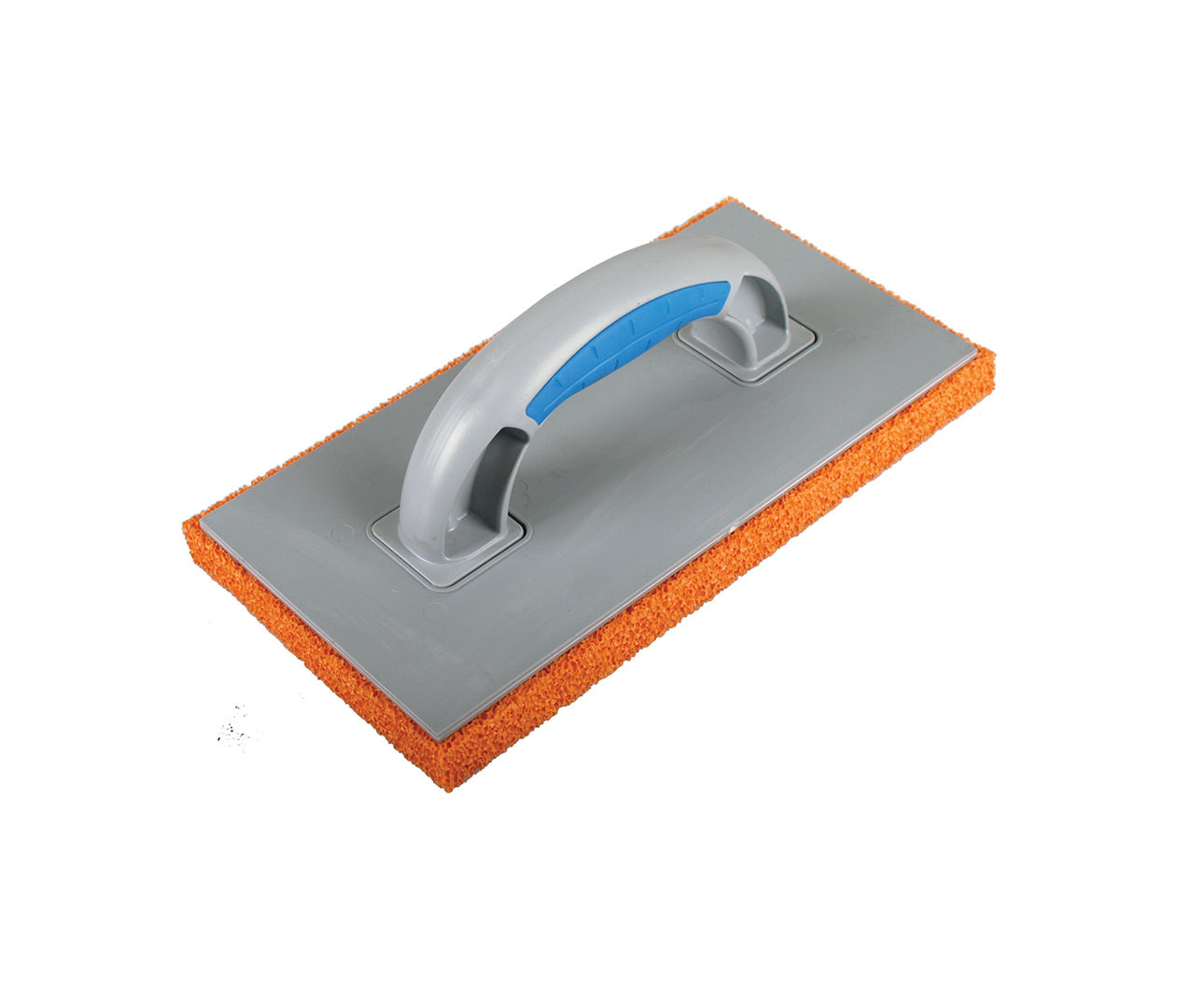 De rubberen spons wordt gebruikt voor een gladde afwerking.