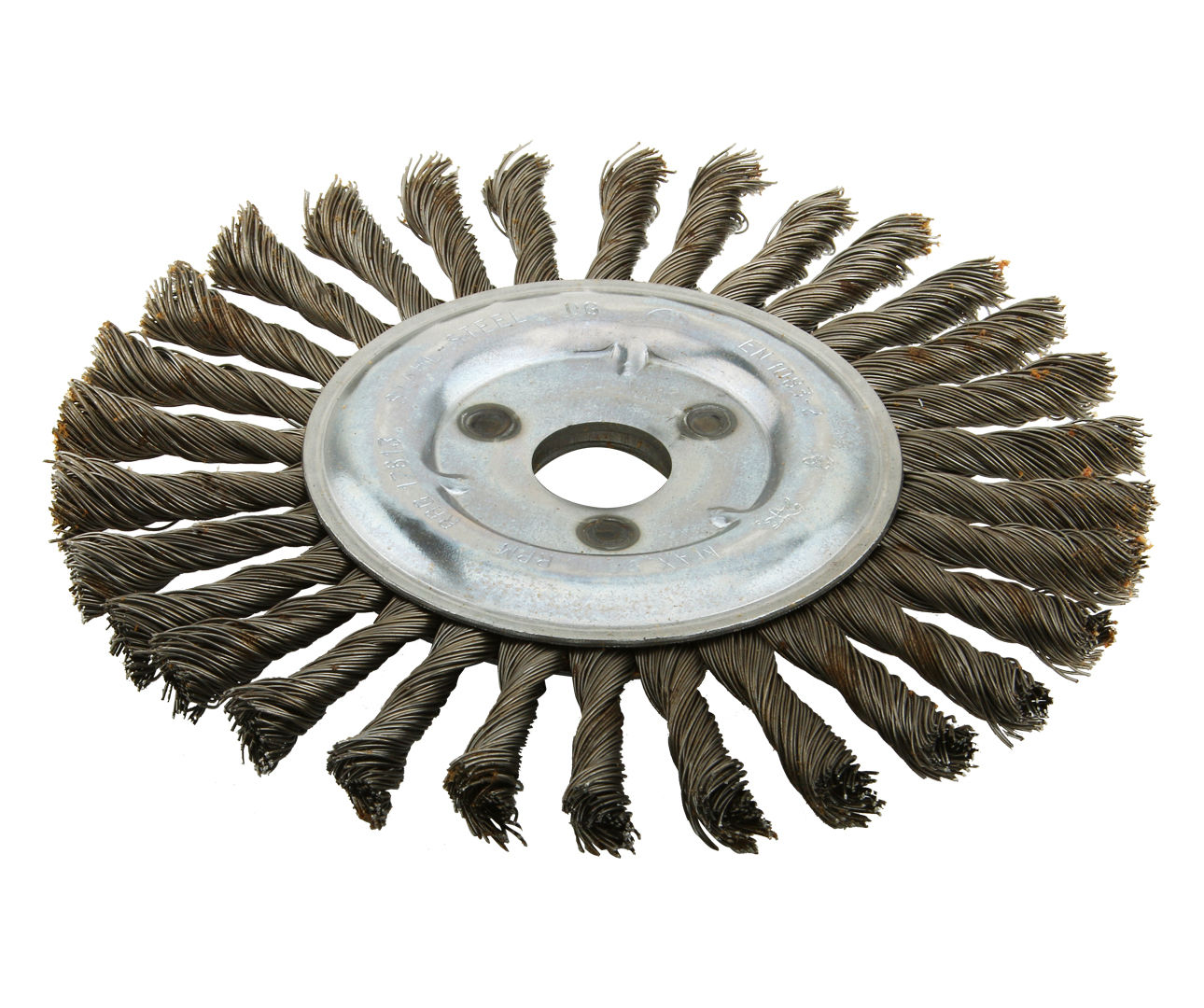 Ronde staalborstel voor de haakse slijper. Hiermee zijn metalen oppervlakken snel van roest en slakken te ontdoen. De schijf past in een grote haakse slijper.