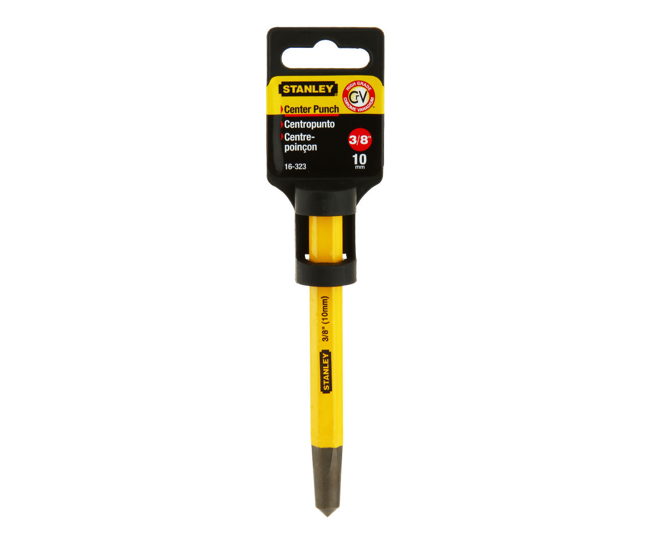 De centerpons met scherpe punt is geschikt om putjes te maken in metaal en kunststof. Het putje wordt gezet met een hamerslag op de centerpons. De markering biedt grip bij het boren van een gat, of bij het afschrijven van bijvoorbeeld een cirkel met een een passer. Deze gele centerpons is 10 mm breed en 127 mm lang.