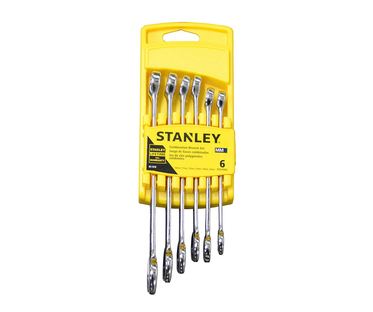 Met een moersleutel zijn bouten en moeren eenvoudig, veilig en stevig vast en los te draaien. De combinatiesleutel heeft een steek- en een ringsleutel in dezelfde maat. Bij de steeksleutel staat de bek onder een hoek van 15°, de ringsleutel is twaalfkantig en heeft hierdoor snel grip. Deze set bevat de metrische maten 10, 11, 12, 13, 14 & 15 mm. De sleutels zitten overzichtelijk bijeen in de handige plastic opbergklem.