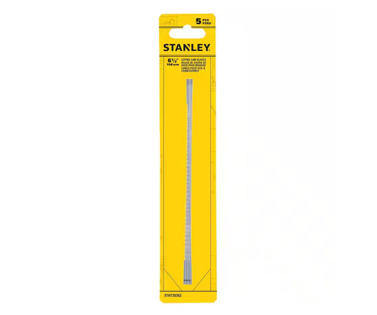 Coping-zaagbladpakket bevat vijf flexibele, warmtebehandelde stalen bladen die gelakt zijn voor corrosiebestendigheid en een lange levensduur van het blad. Ontworpen voor de STANLEY Pro Coping Saw (STHT15106), deze verpakking bevat 5 coping-zaagbladen.