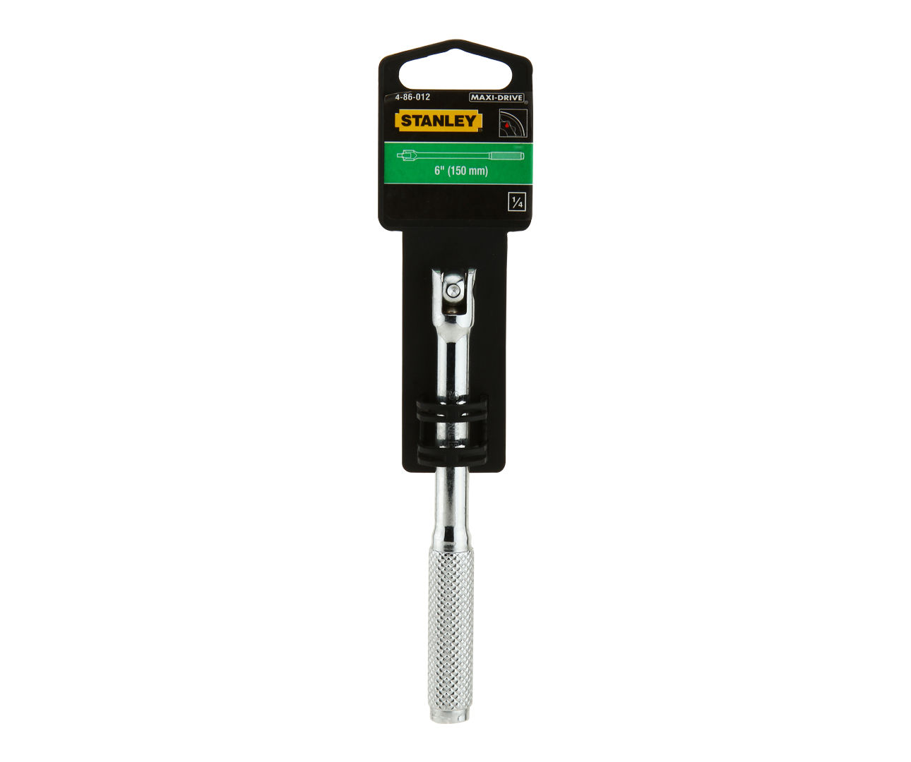 De flexibele handgreep is een bijzondere sleutel. De lange smalle greep heeft een flexibele kop en is geschikt om moeren en bouten op moeilijk toegankelijke plaatsen te bereiken. Deze verlengde sleutel is 150 mm lang en heeft een 1/4" aansluiting.