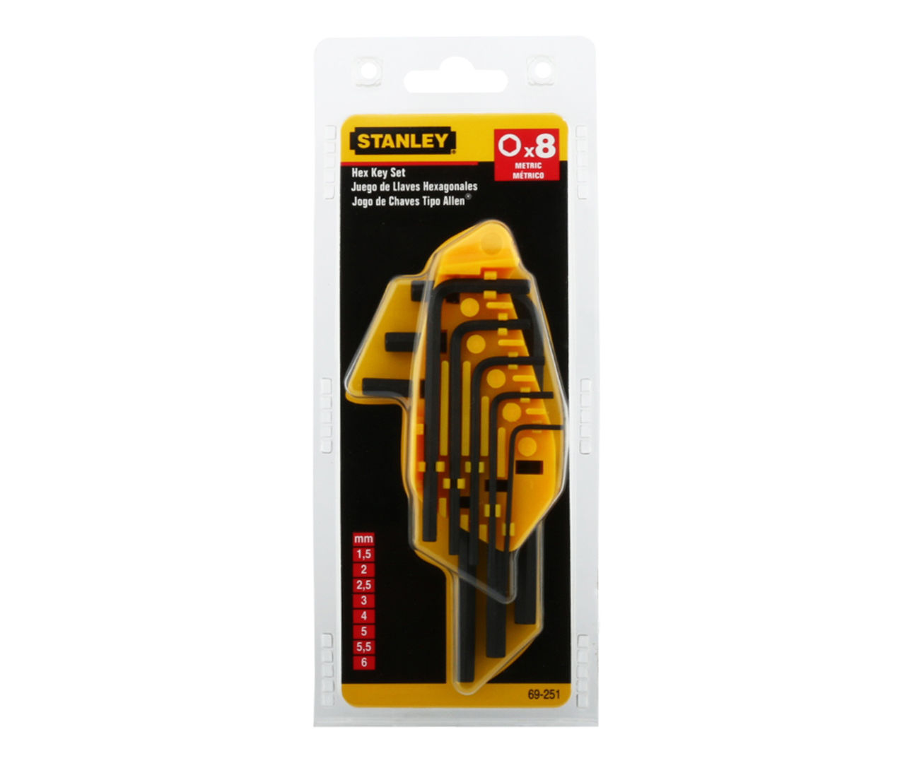 De inbussleutel is geschikt om bouten en schroeven met een inwendig zeskantsgat vast en los te zetten. De sleutels hebben afgeschuinde hoeken en zitten overzichtelijk bijeen in de handige plastic opbergklem. Deze 8-delige set bevat de metrische maten 1½, 2, 2½, 3, 4, 5, 5½, 6, 8 & 10 mm.
