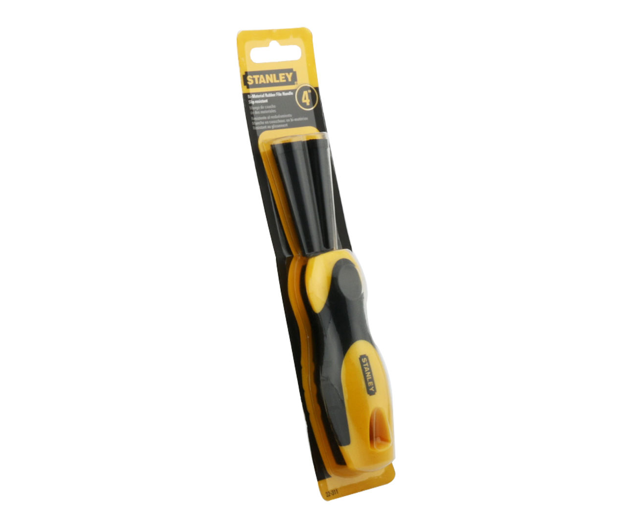 Technische specificatieMaterial: Rubber w/3 Inserts. Handle Design: Ergonomic Yellow and Black. For Use With: Stanley(R) Files. Type: Interchangeable.