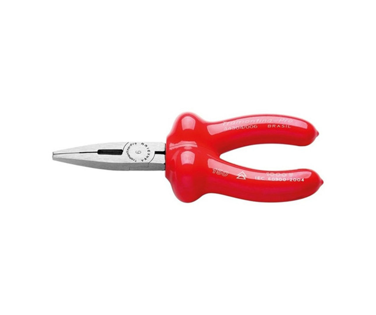 De Tramontina PRO IEC 60900 geïsoleerde gereedschapslijn biedt totale veiligheid voor degenen die met elektriciteit werken. Aanbevolen voor activiteiten van laagspanning tot 1000 volt op wisselstroom en 1500 volt op gelijkstroom. De gereedschappen voldoen aan de eisen van de internationale norm IEC 60900 (equivalent aan de Europese norm EN 60900). De lijn biedt een complete lijn van combinatie- en steeksleutels, ringsleutels, verstelbare sleutels, doppen en toebehoren, tangen, schroevendraaiers en dopsleutels, mini-ijzerzagen, kabelstrippers en gereedschapskoffers. Om totale veiligheid voor gebruikers te garanderen, test Tramontina 100% van haar gefabriceerde gereedschappen. Deze gereedschappen worden onderworpen aan strenge kwaliteitstesten zoals impact bij kamertemperatuur en bij -25°C, een 5000 V diëlektrische test met 2 kg compressie, hechting van isolatiemateriaal, vlamvertragende eigenschappen bij blootstelling aan een vlam gedurende 10 seconden, en een 10000 V diëlektrische test met de gereedschappen ondergedompeld in water of roestvrijstalen bollen.